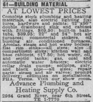 Advance Plumbing survived through the Great Depression and World War Two and continued operating in the City of Detroit as things began to shift. The first half of the century elevated the prominence of both the United States and Detroit in the global economy, but things were beginning to shift and Detroit had already reached its peak.